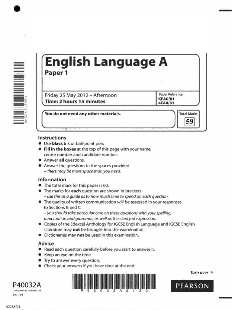 Pearson education accepts no responsibility whatsoever for the accuracy or method of working in the answers given. Need help with these papers? As there are 3 papers, it is almost certain that topics from paper 1 may appear again, so definitely make sure you revise. Savesave edexcel igcse english a paper 1 exemplar material. Aqa english language paper 2 question 2 exemplar answer.